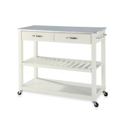 Crosley-Stainless-Steel-Top-Rolling-Kitchen-Cart-Island-With-Removable-Shelf / Crosley Natural Wood Top Rolling Kitchen Cart/Island With ... - Catskill preston hollow white kitchen cart with butcher block.. stainless steel kitchen carts are easy to clean, move around, and incorporate into any style decor. Catskill preston hollow white kitchen cart with butcher block. 42.72"w x 18.90"d x 35.43"h. This cart also provides an ample amount of extra storage. crosley alexandria stainless steel top kitchen island.
